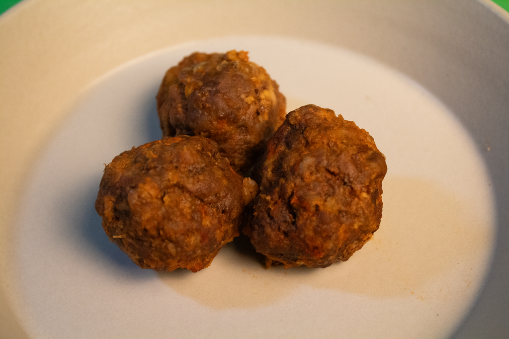 - Almôndegas feitas com blend de carnes macias (Fraldinha e Patinho)