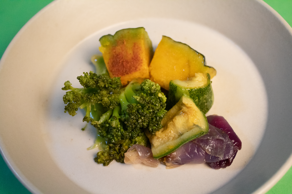 Escalope de Filé Mignon ao Molho Madeira e Legumes Assados