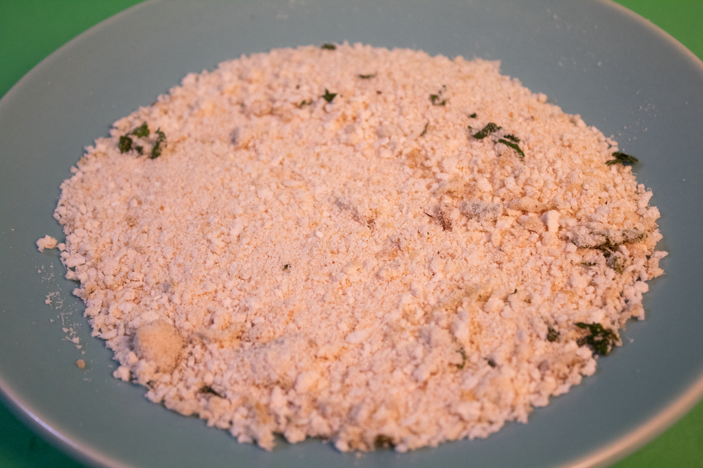 - Farofa crocante feita com farinha de mandioca e temperos frescos