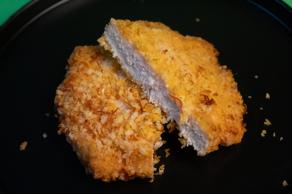 - Filé de frango Empanado com uma crocante crosta de parmesão e farinha panko