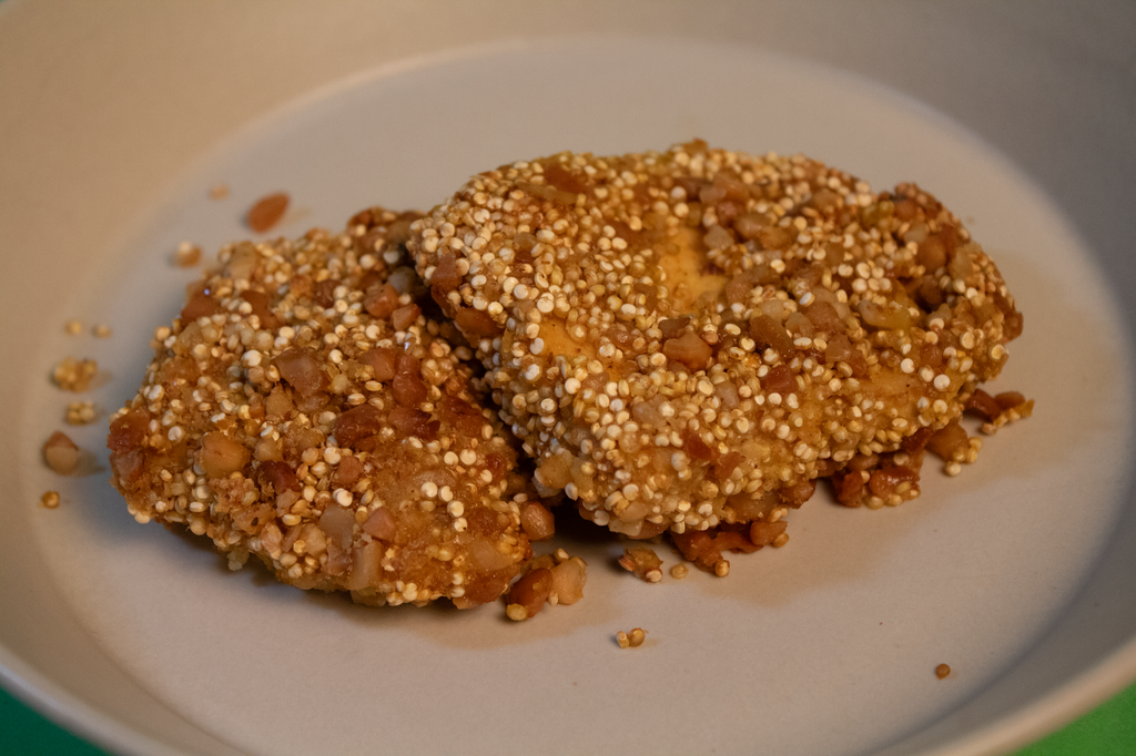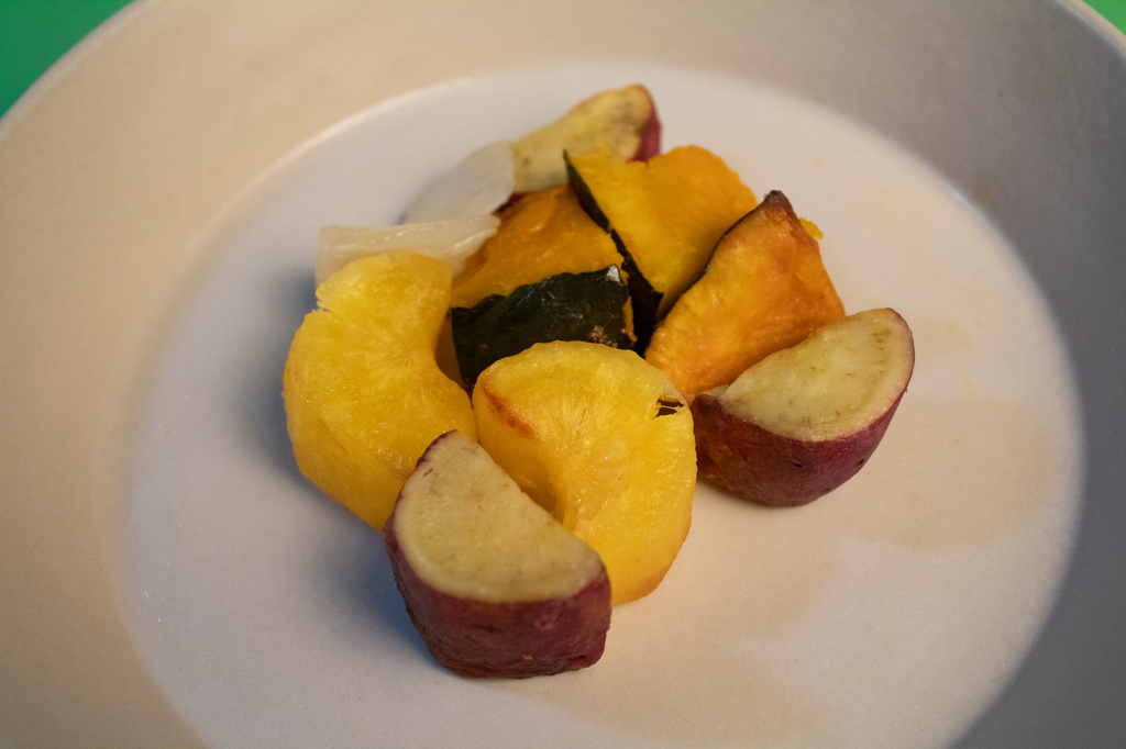 Frango com Mix de Grãos, Arroz Jasmine Cebolinha e Mix de Raízes Assadas
