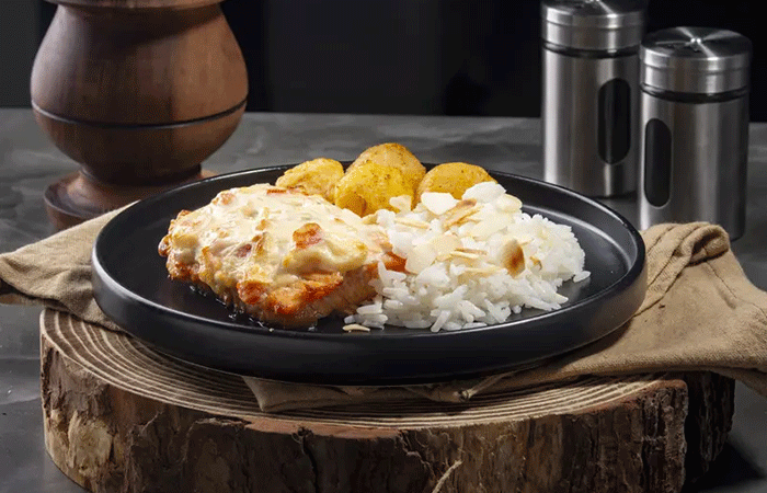 - 1x Parmegiana de Frango, Arroz Branco e Batata Rústica